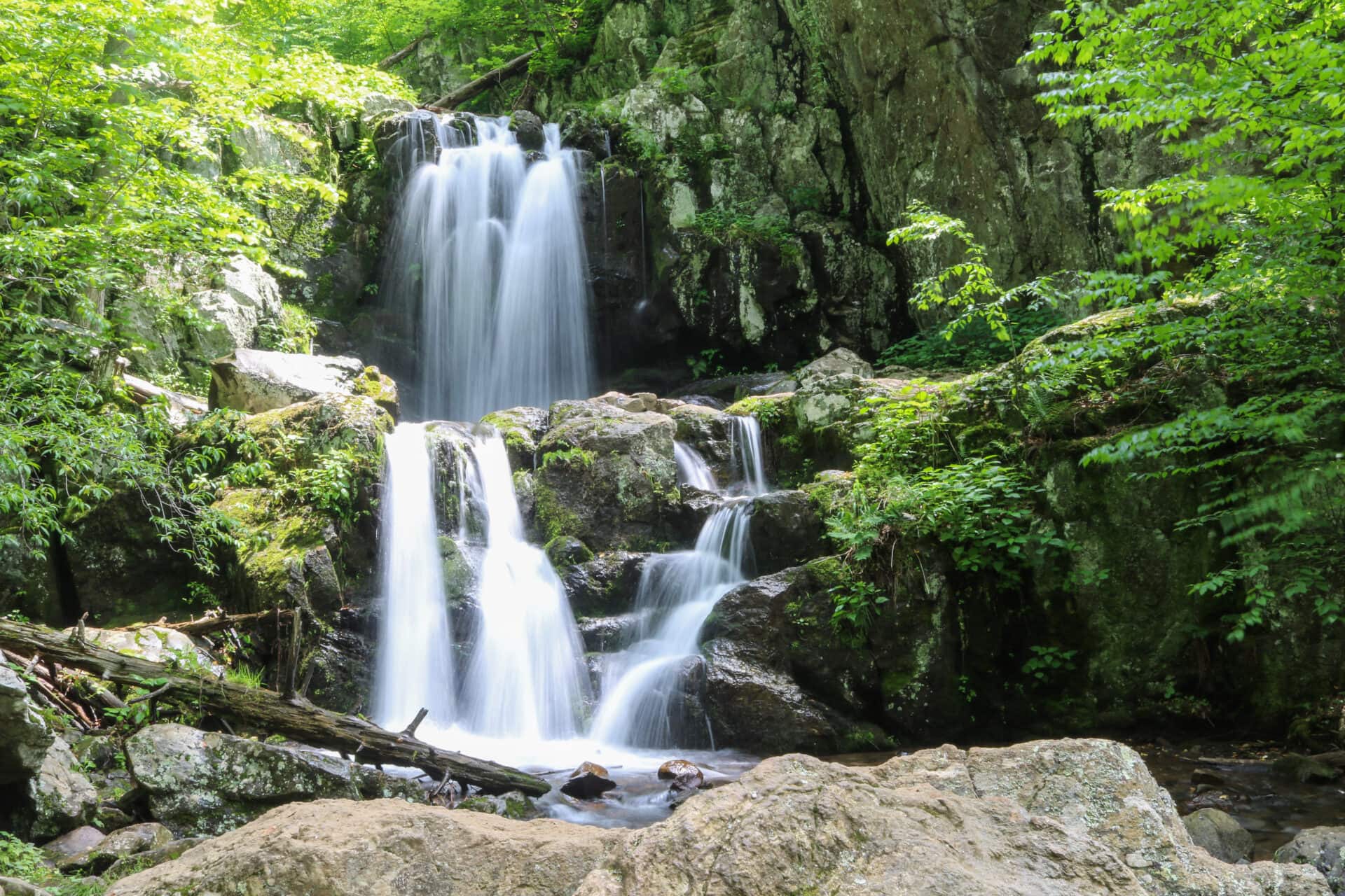You’ll soon reach Doyles River Falls, which includes 63-foot-tall Lower Falls and 28-foot-tall Upper Falls. After the second waterfall, loop back to your starting point by way of the Browns Gap Fire Road and Appalachian Trail. All in, the loop hike alongside Jones Run and Doyles River clocks in at 7 miles.