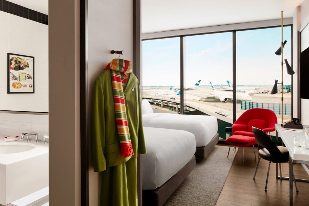 One of the 512 guest rooms. | Photo courtesy of the TWA Hotel -